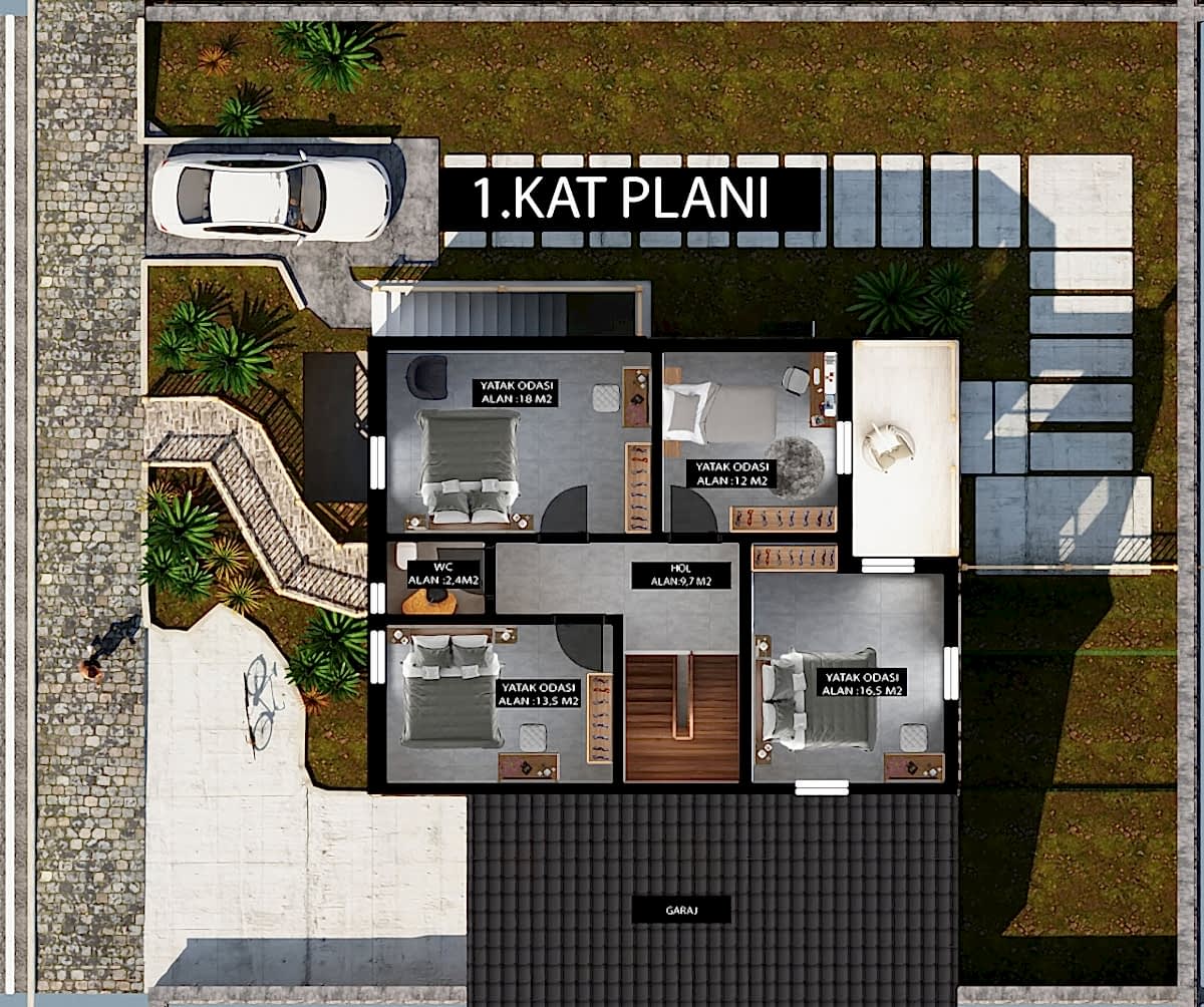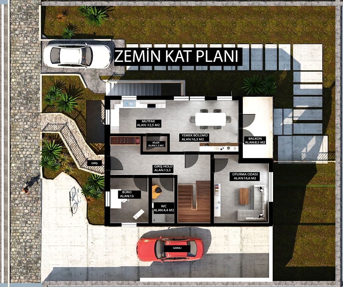 190 m2 kullanım alanıyla doğal yaşam alanınıza sahip olabilirsiniz.