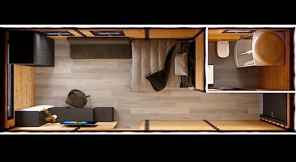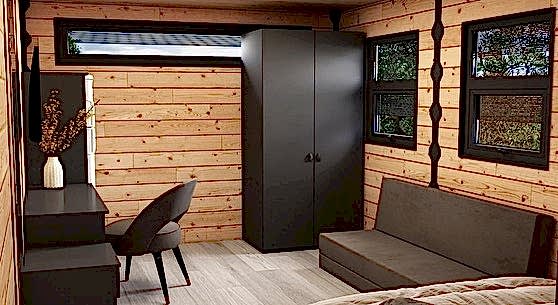 Tek katlı şase üzerinde blockhan ahşap evimiz taşınabilir ve aynı gün montaj edilebilebilir.